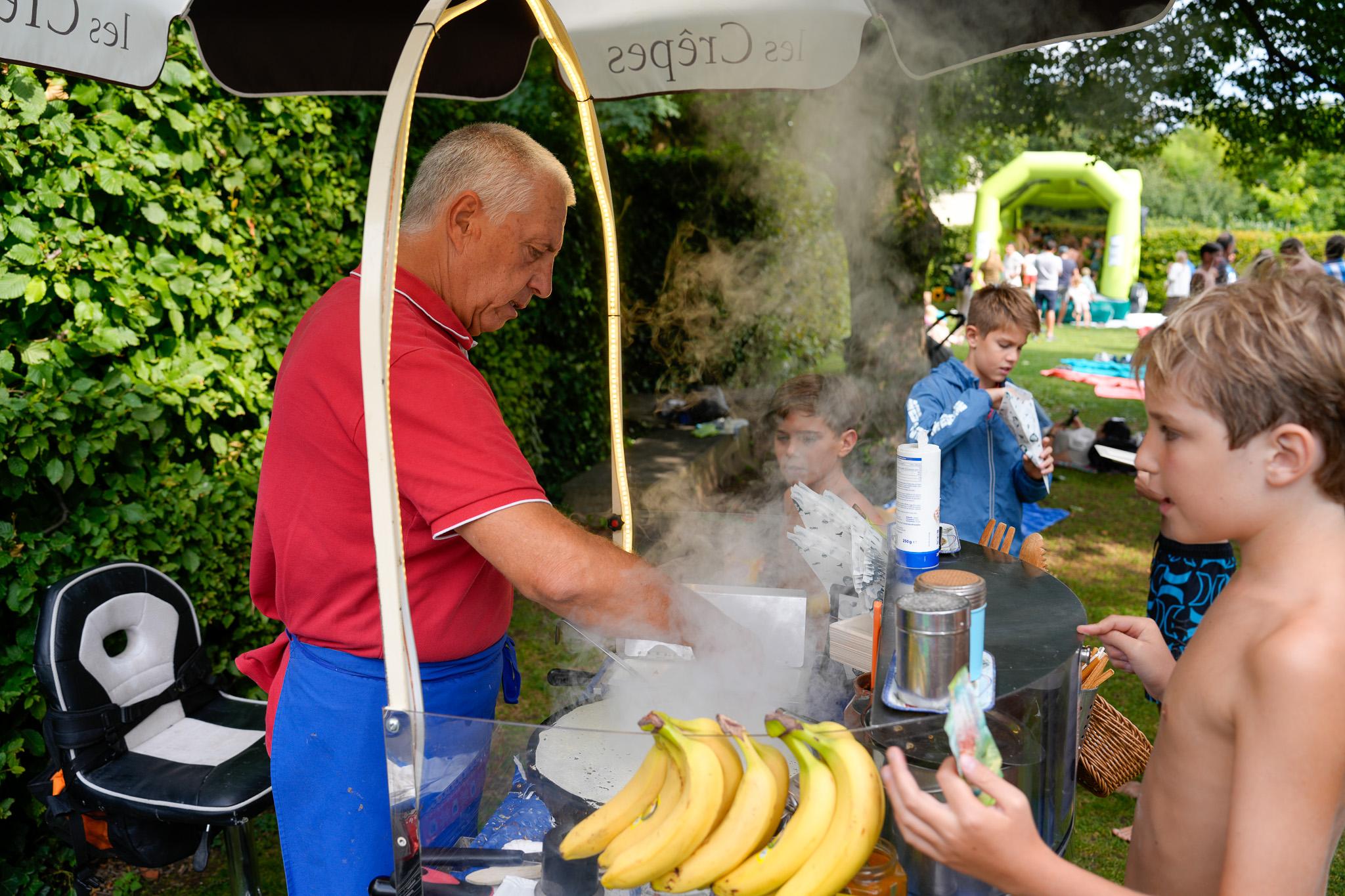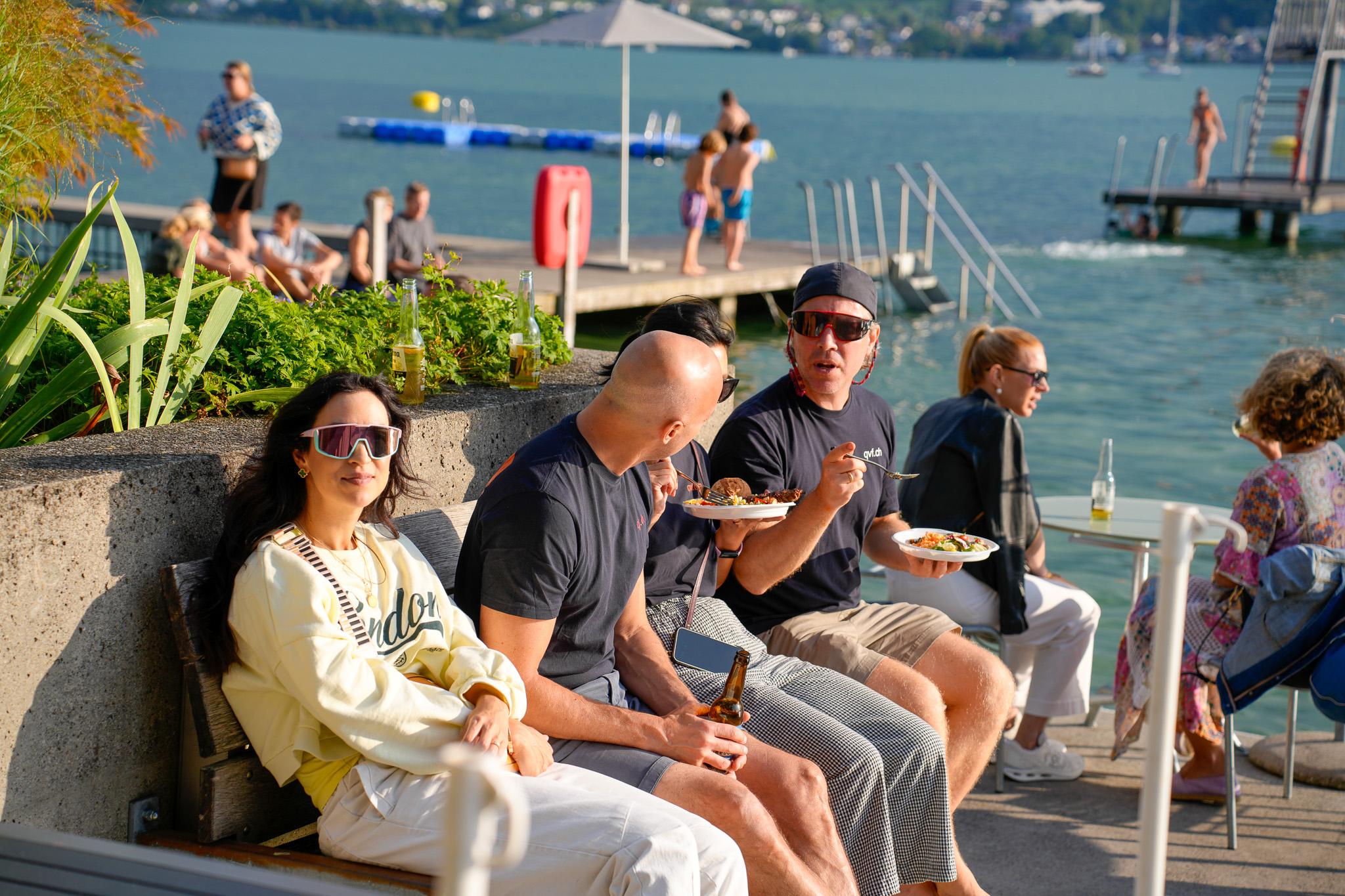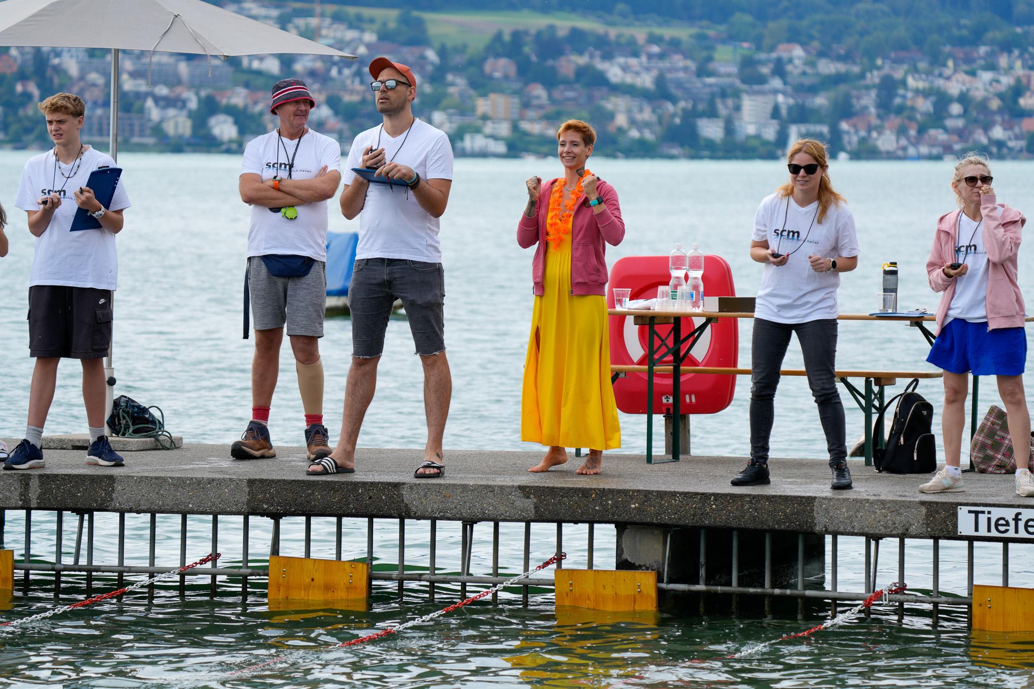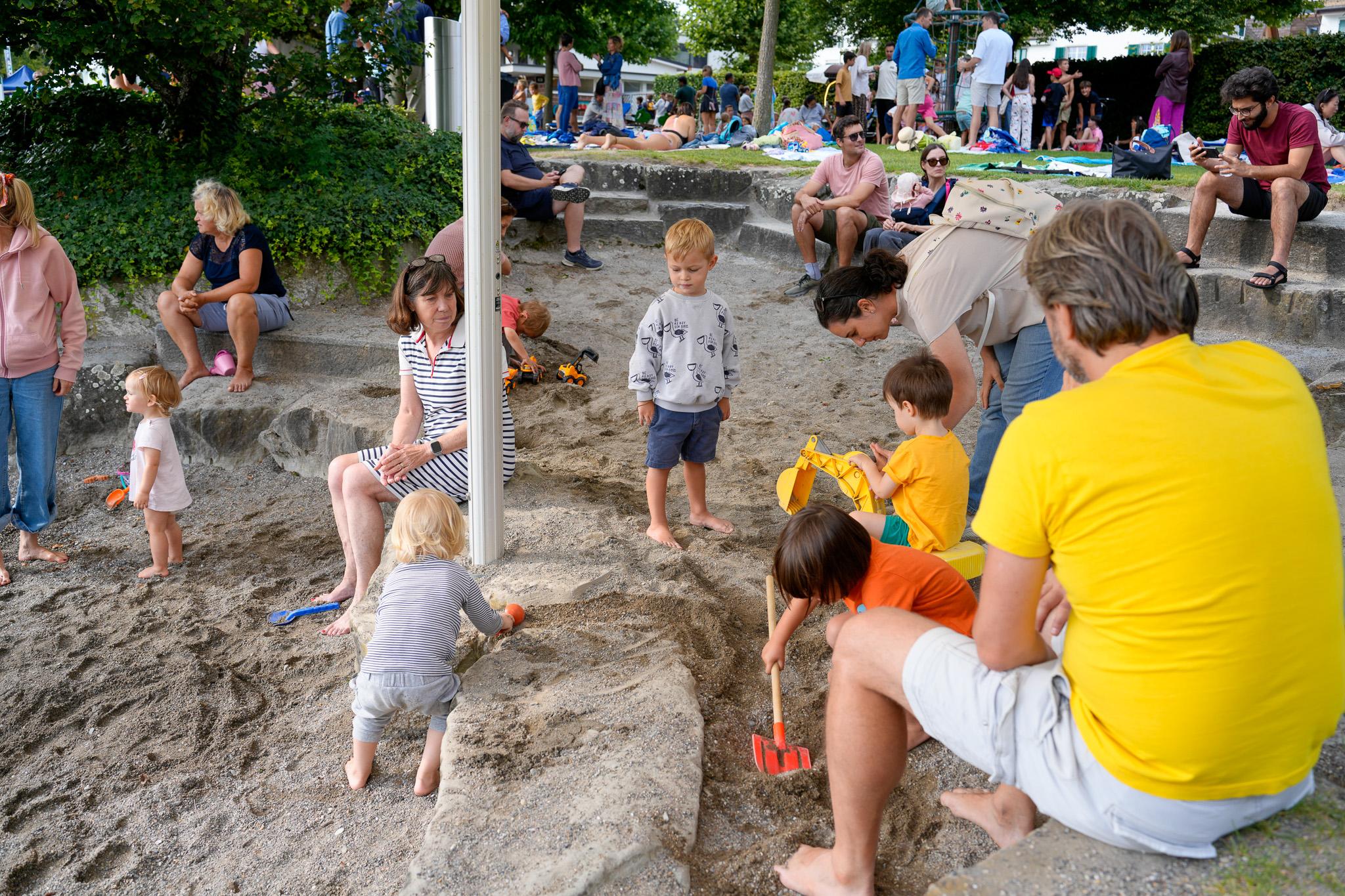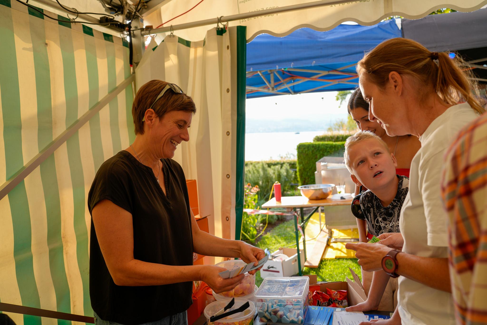 Das Schwimmfest entwickelte sich über die Jahre immer mehr zu einem Stelldichein für das ganze Quartier, für Kinder und Erwachsene, mit Festwirtschaft und Musik bis in die späten Abendstunden. Unzählige freiwillige Helfer sorgen mit selbstgebackenen Kuchen und Salaten für ein wunderbares Buffet, sie grillieren, schenken Getränke aus und kümmern sich nach dem Schwimmen um die Kinder. Der Schwimmclub Meilen sorgt für die exakte Zeitmessung. «Es ist wunderbar, wie engagiert und unkompliziert alle sind», findet Kathrin Jeker, Vorstandsmitglied des Quartiervereins. «Ohne die Mitwirkung so vieler Helfer wäre die Organisation gar nicht möglich, und wir schätzen uns glücklich, dass so viele jedes Jahr gerne mitmachen.»