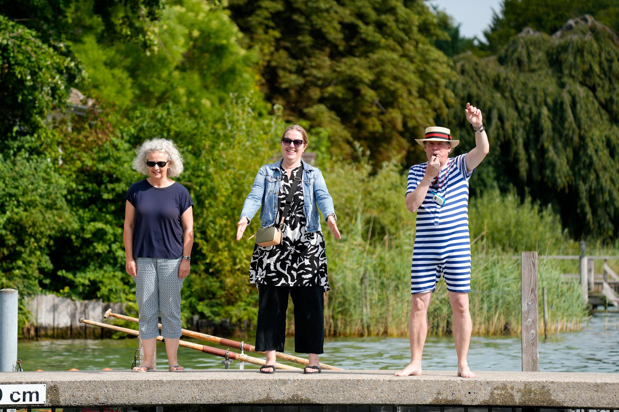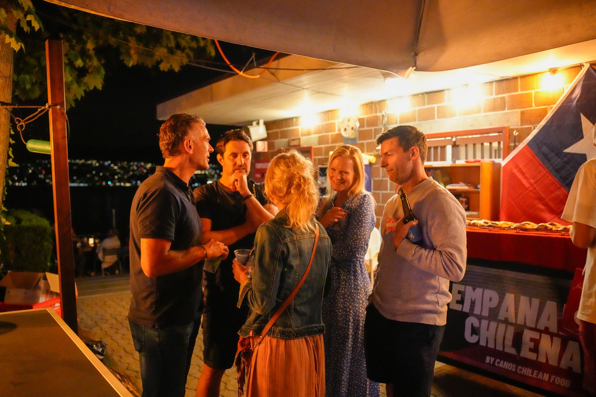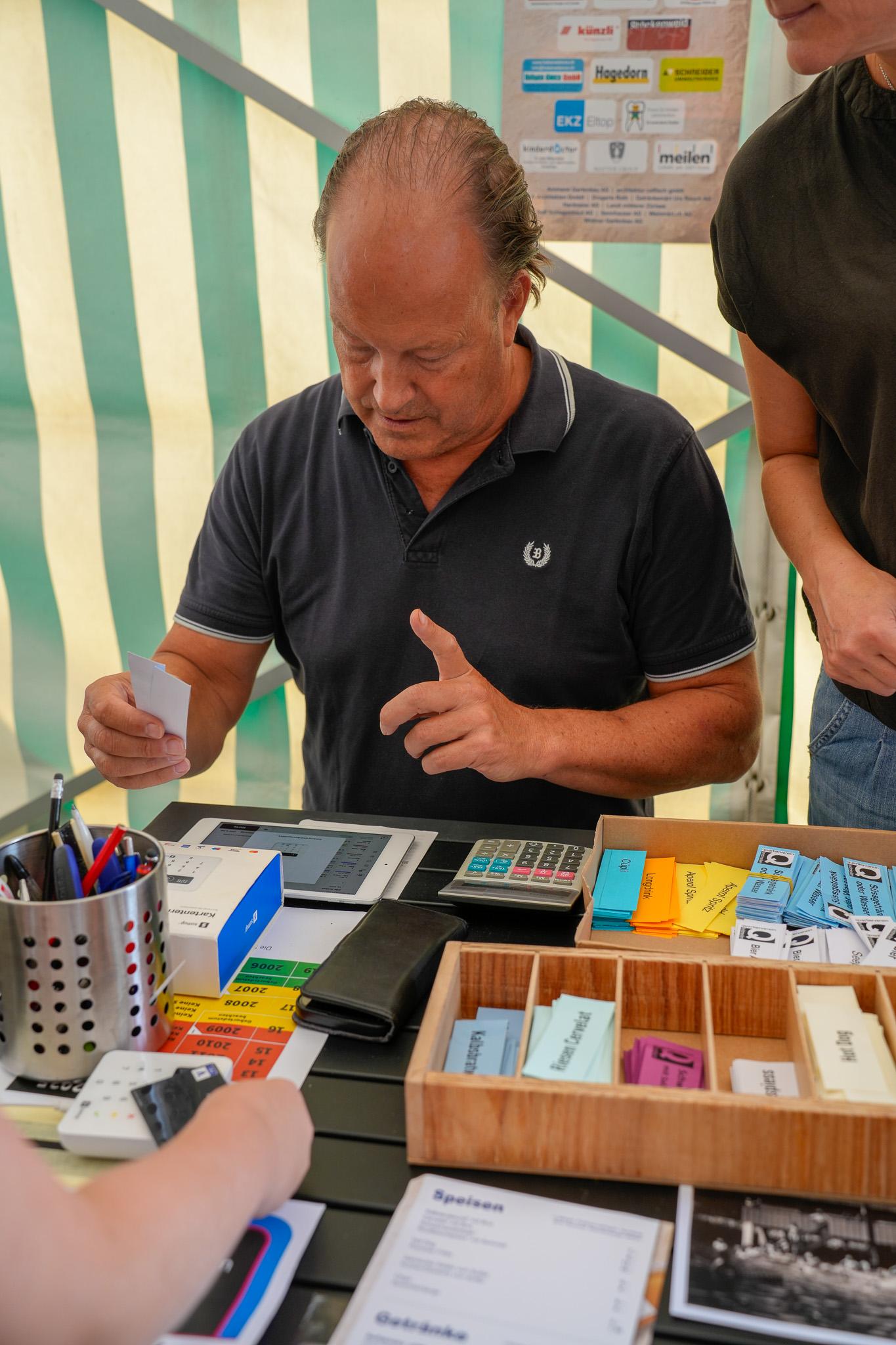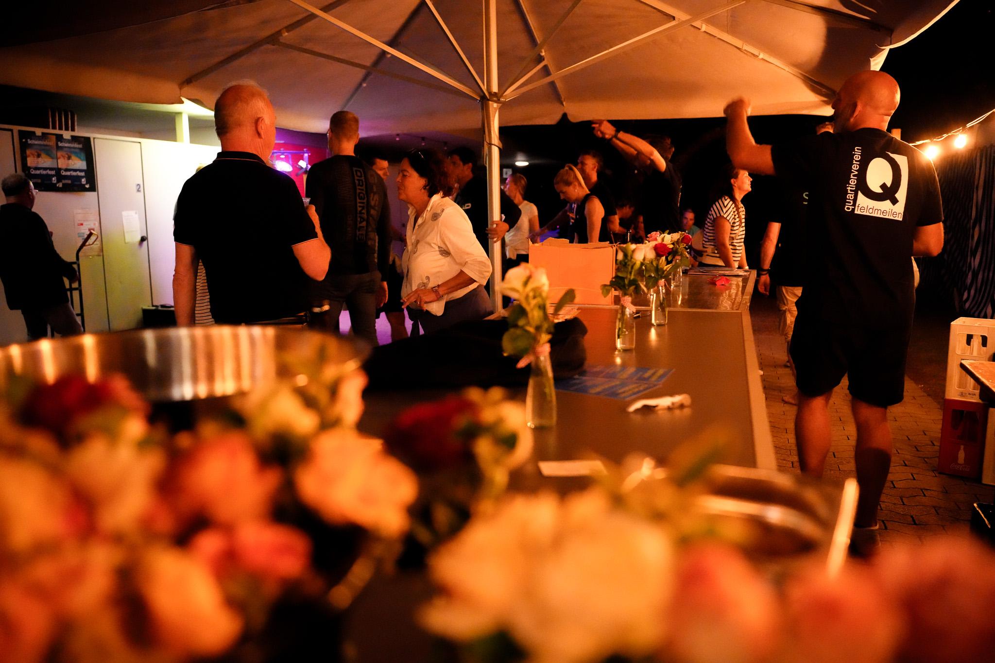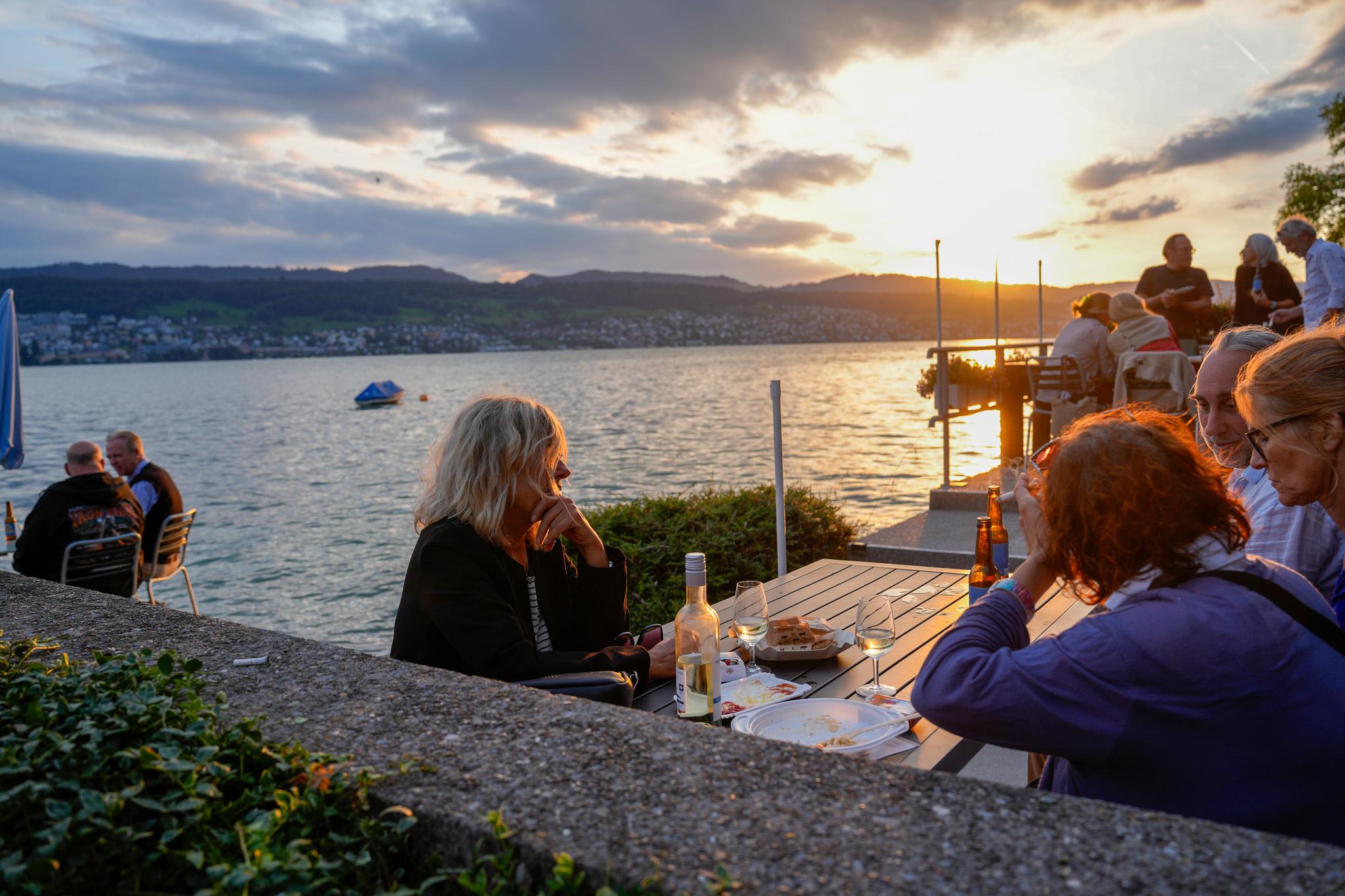 Das Schwimmfest entwickelte sich über die Jahre immer mehr zu einem Stelldichein für das ganze Quartier, für Kinder und Erwachsene, mit Festwirtschaft und Musik bis in die späten Abendstunden. Unzählige freiwillige Helfer sorgen mit selbstgebackenen Kuchen und Salaten für ein wunderbares Buffet, sie grillieren, schenken Getränke aus und kümmern sich nach dem Schwimmen um die Kinder. Der Schwimmclub Meilen sorgt für die exakte Zeitmessung. «Es ist wunderbar, wie engagiert und unkompliziert alle sind», findet Kathrin Jeker, Vorstandsmitglied des Quartiervereins. «Ohne die Mitwirkung so vieler Helfer wäre die Organisation gar nicht möglich, und wir schätzen uns glücklich, dass so viele jedes Jahr gerne mitmachen.»