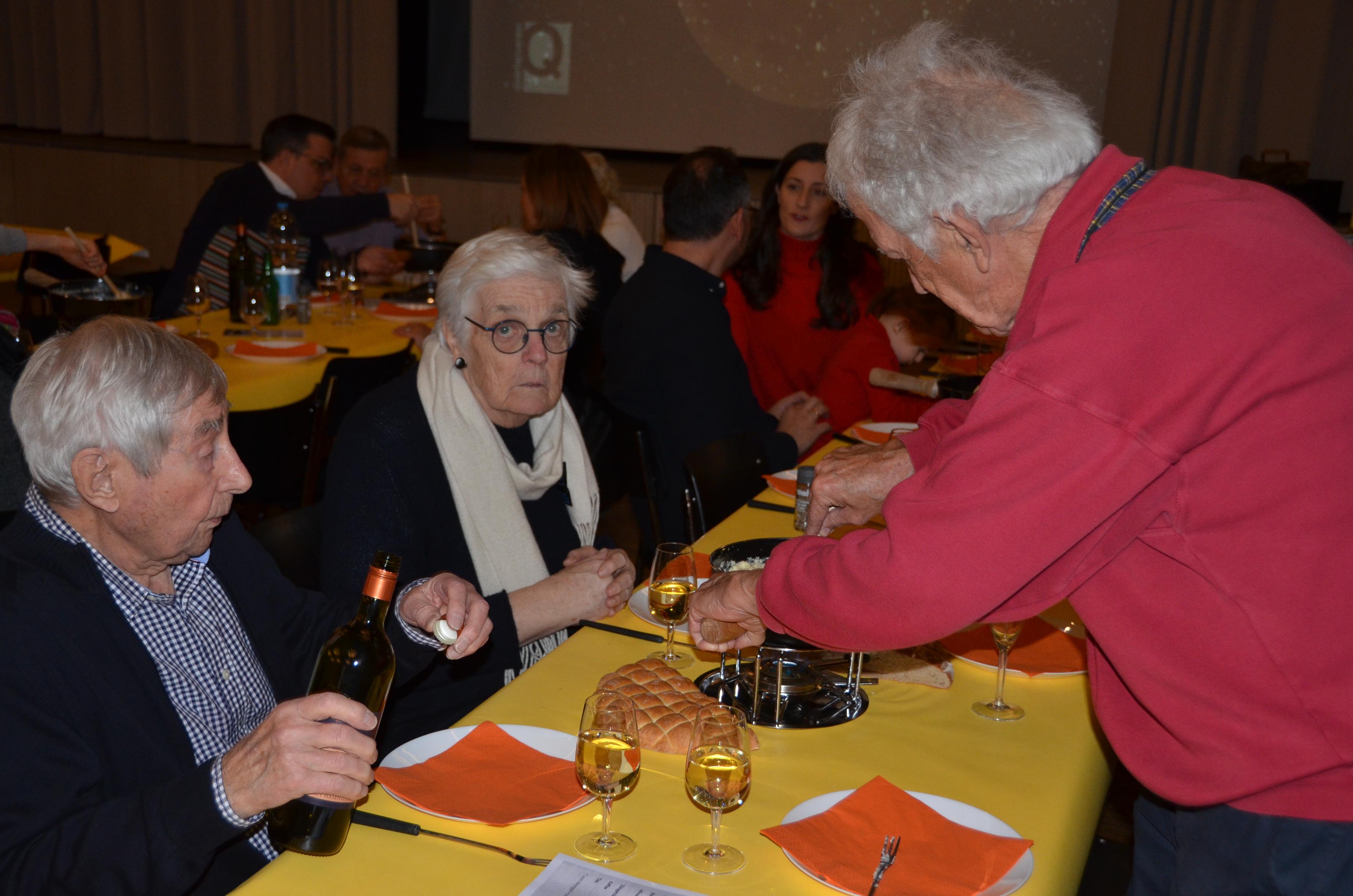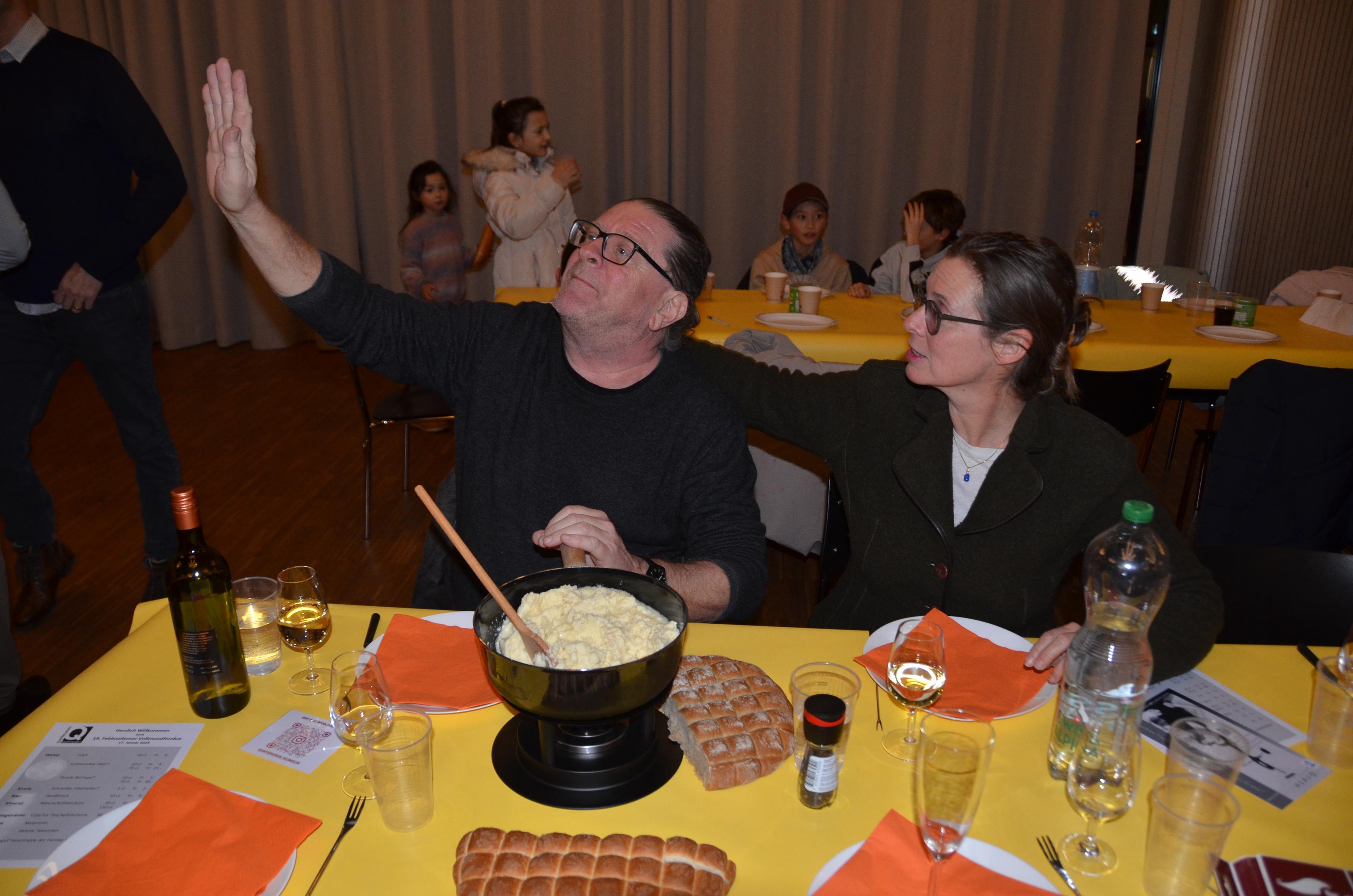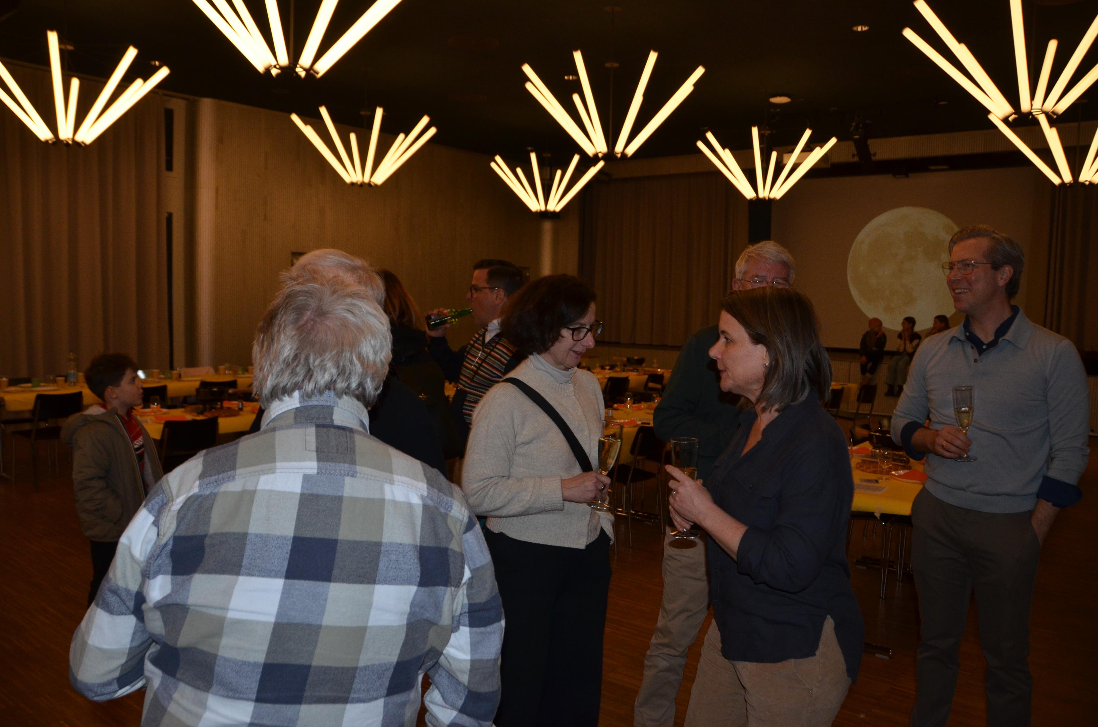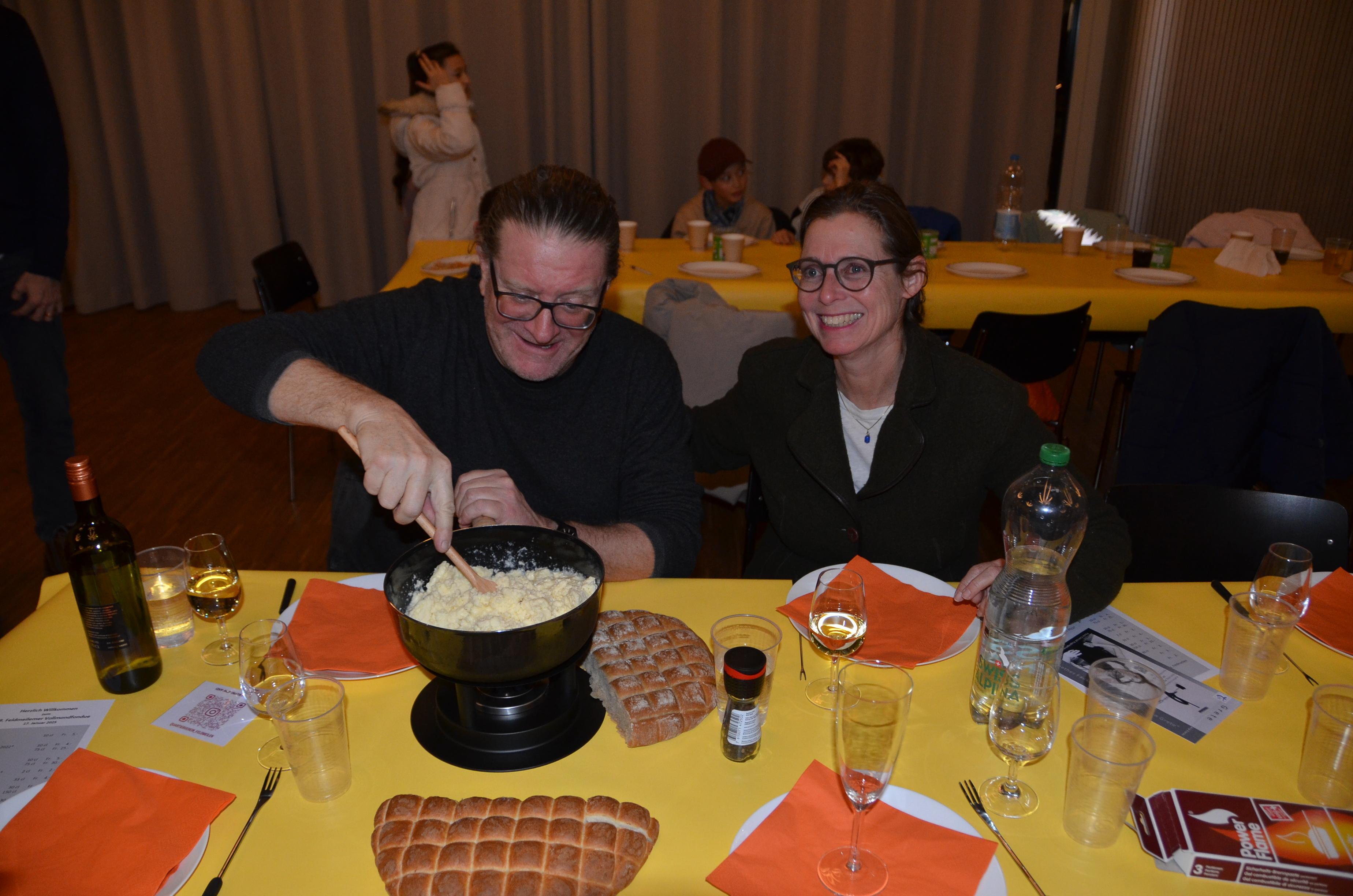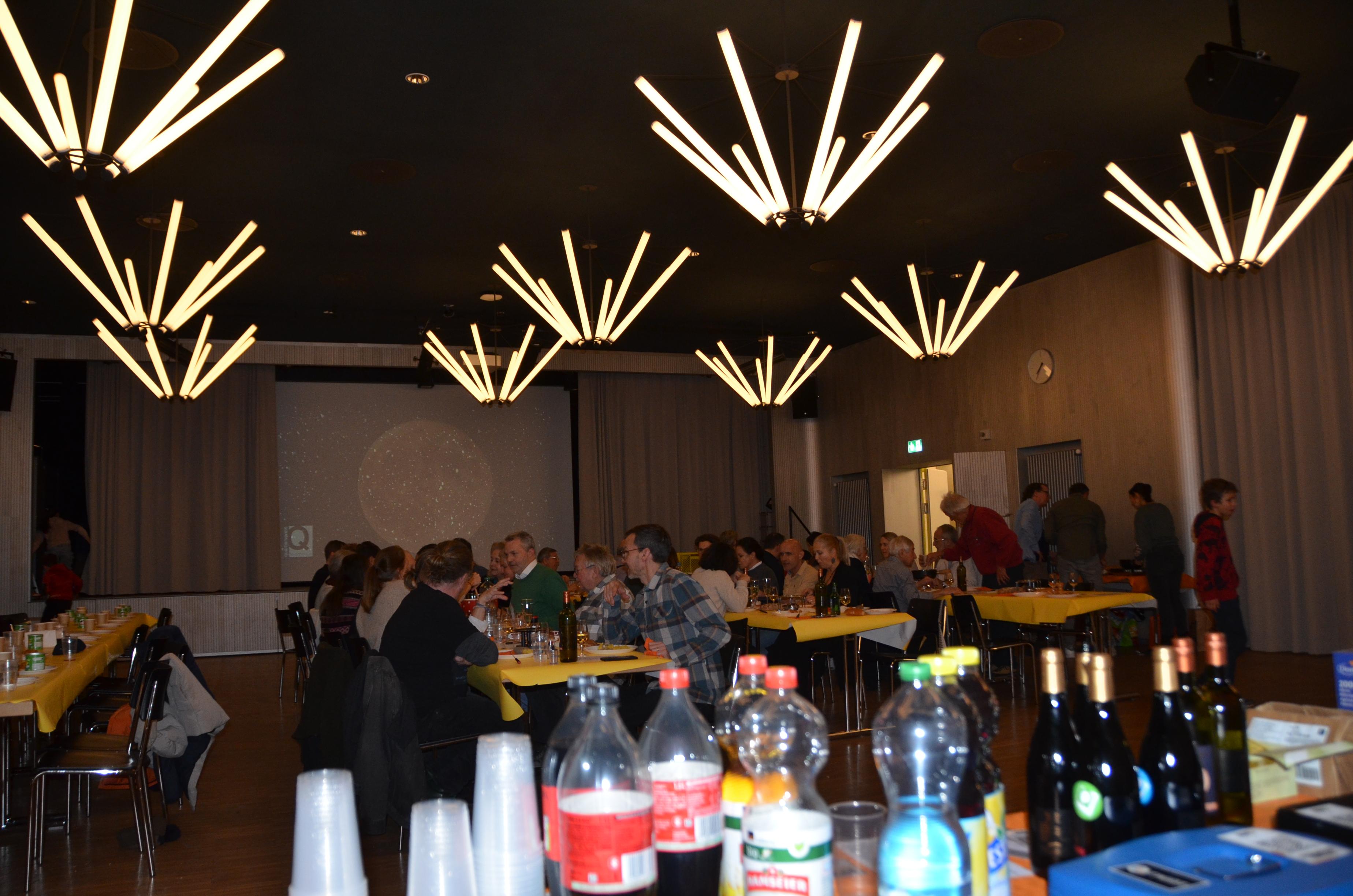 Die Aula des Schulhauses Feldmeilen wurde unter dem Schein des vollen Mondes, zu einem schönen Treffpunkt für alle aus dem Quartier, die Interesse haben, neue Leute kennenzulernen, die gerne zu Fuss in den Ausgang gehen oder die es ganz einfach schätzen, sich wieder einmal mit anderen auszutauschen. Dieses Jahr gab es jedoch aussergewöhnlich viele kurzfristige Abmeldungen, da viele krank waren. Und so fehlten dieses Jahr leider auch ein paar treue Vollmondfondue-Besucher und -Besucherinnen.