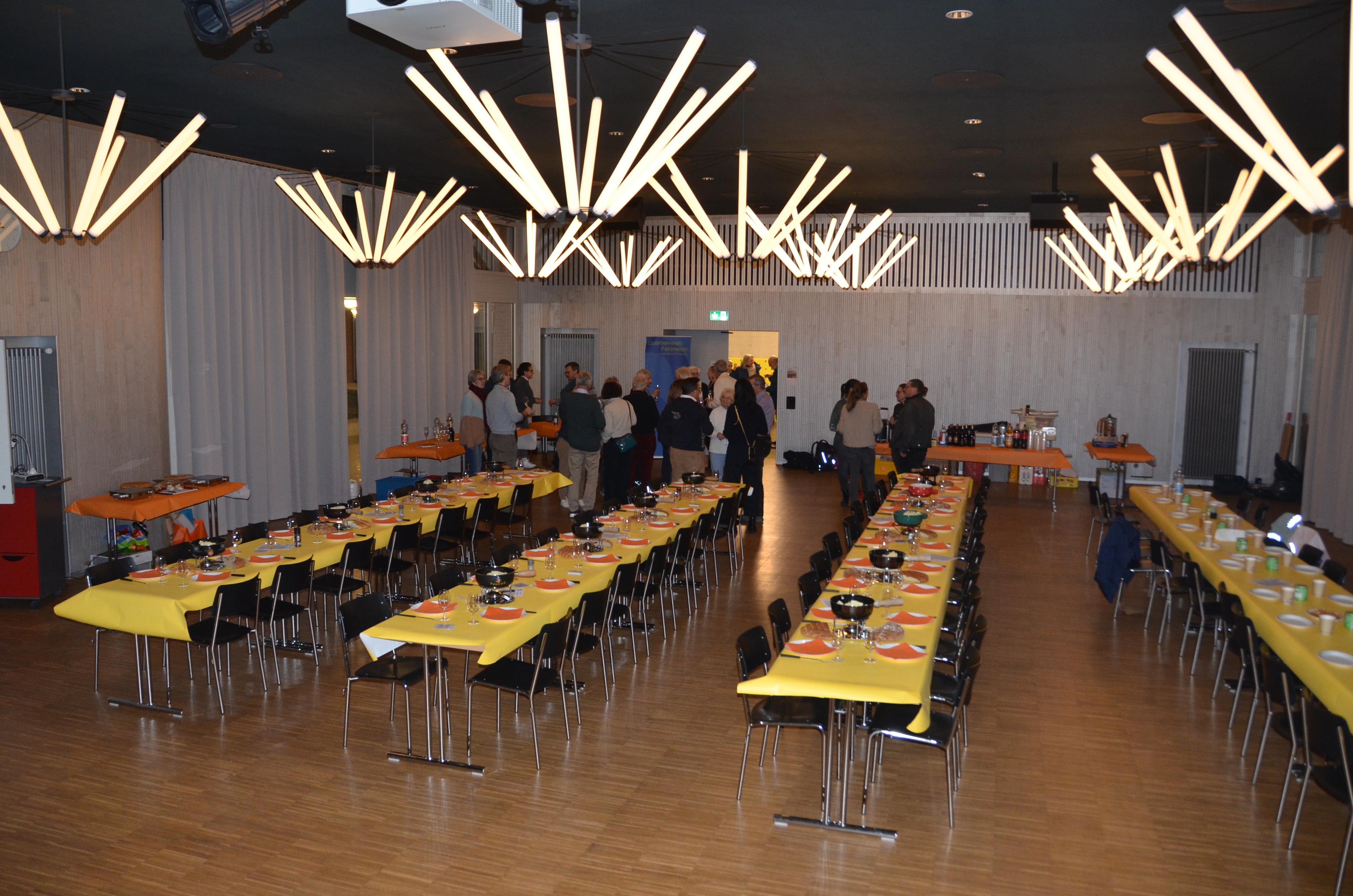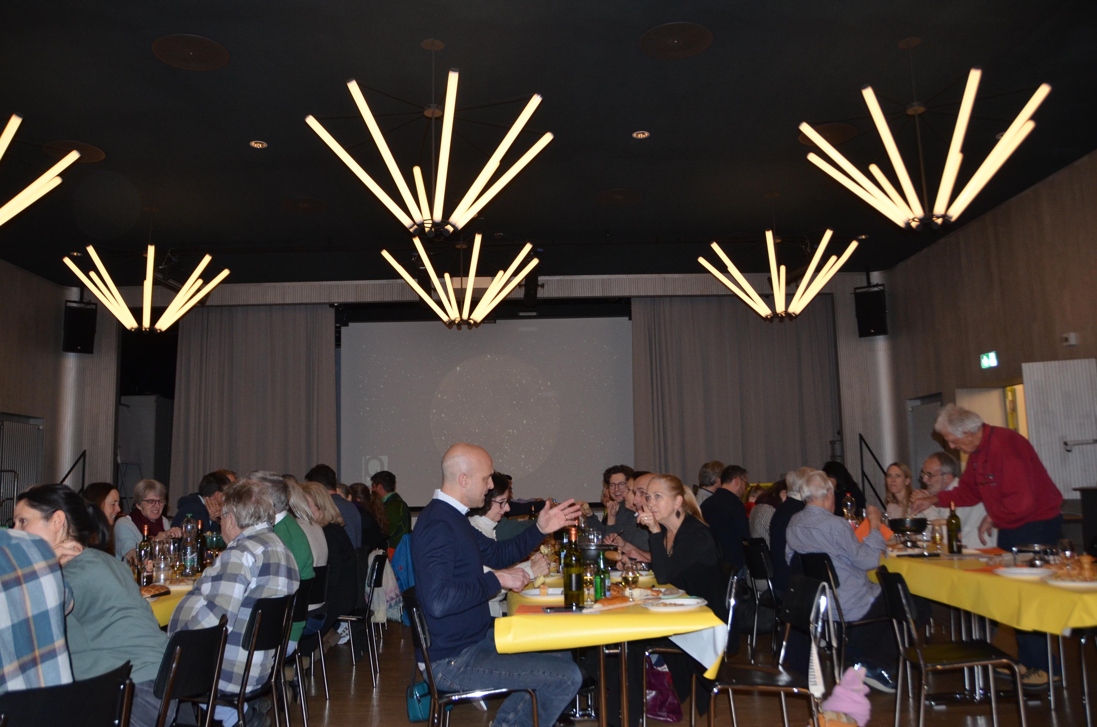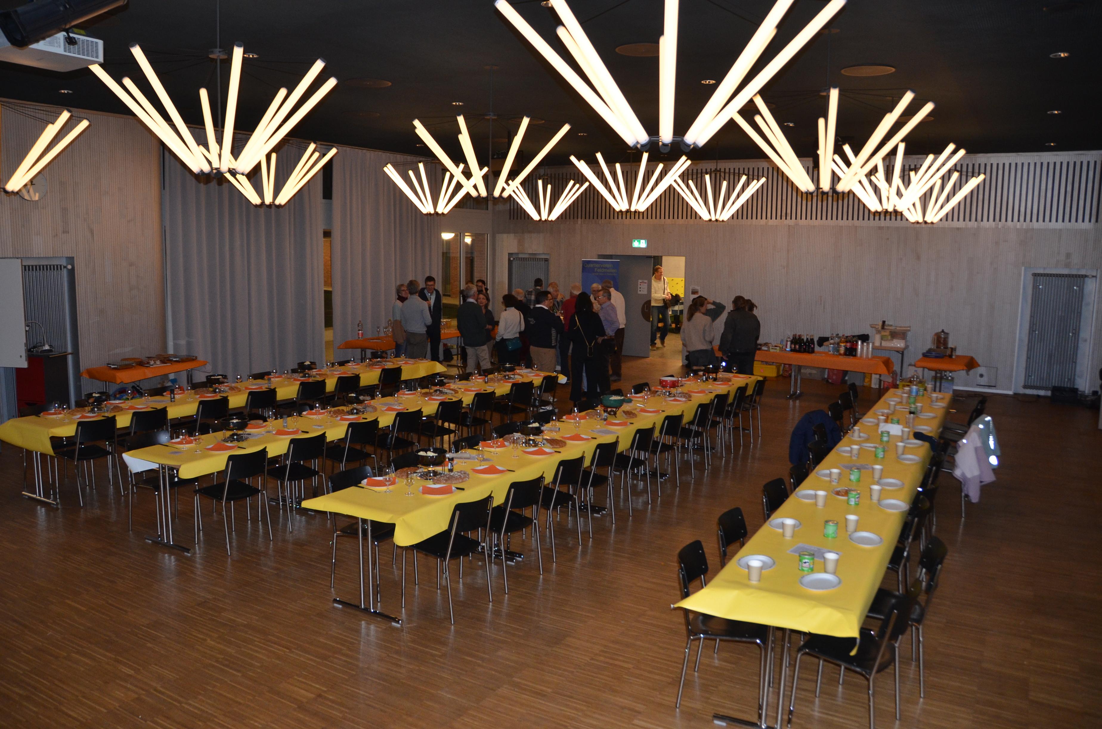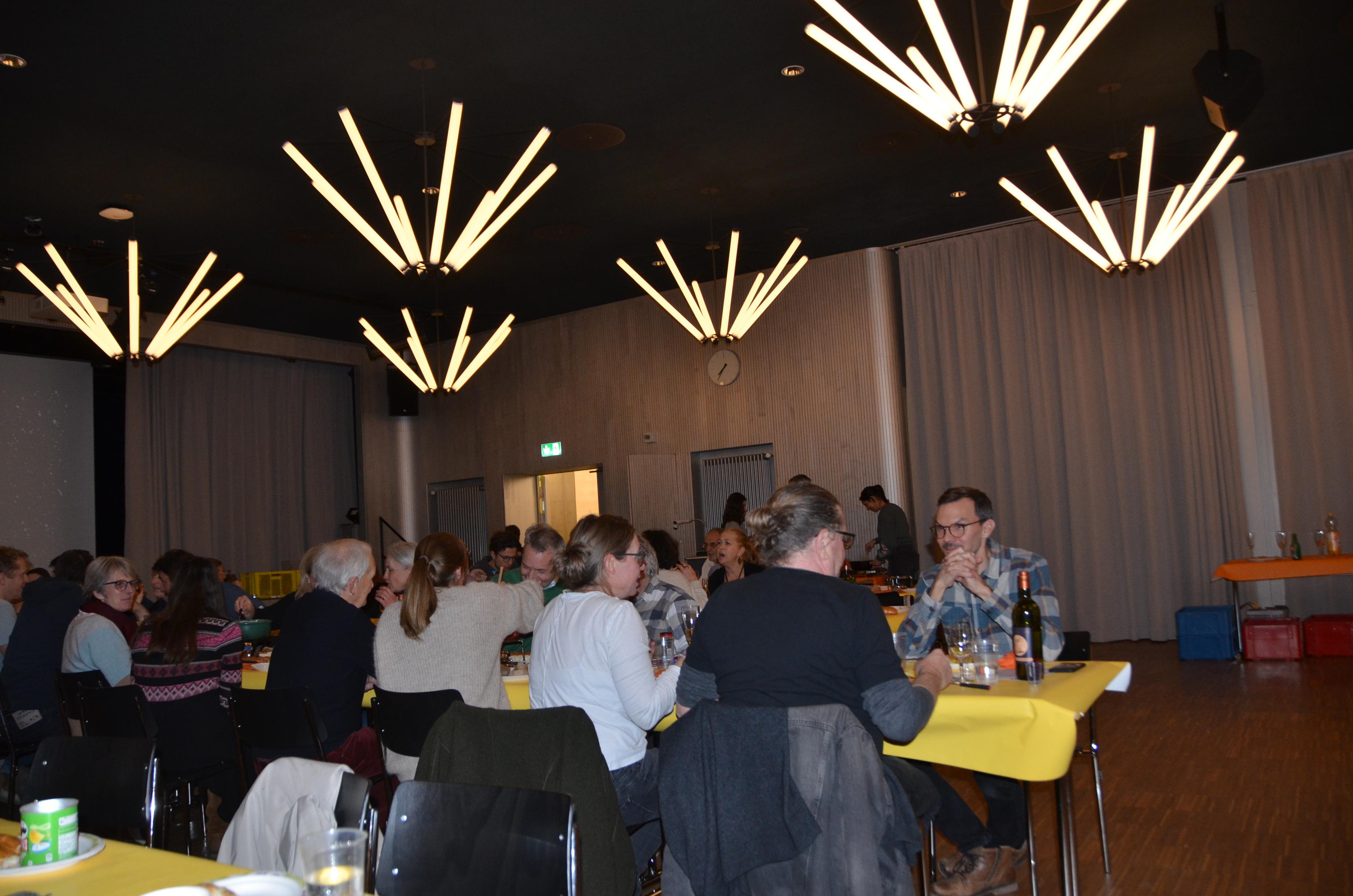 Die Aula des Schulhauses Feldmeilen wurde unter dem Schein des vollen Mondes, zu einem schönen Treffpunkt für alle aus dem Quartier, die Interesse haben, neue Leute kennenzulernen, die gerne zu Fuss in den Ausgang gehen oder die es ganz einfach schätzen, sich wieder einmal mit anderen auszutauschen. Dieses Jahr gab es jedoch aussergewöhnlich viele kurzfristige Abmeldungen, da viele krank waren. Und so fehlten dieses Jahr leider auch ein paar treue Vollmondfondue-Besucher und -Besucherinnen.
