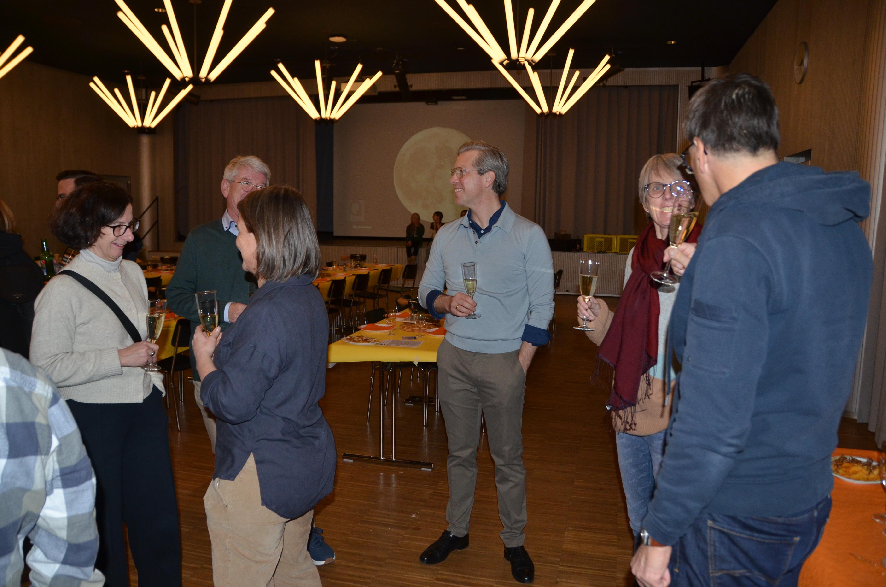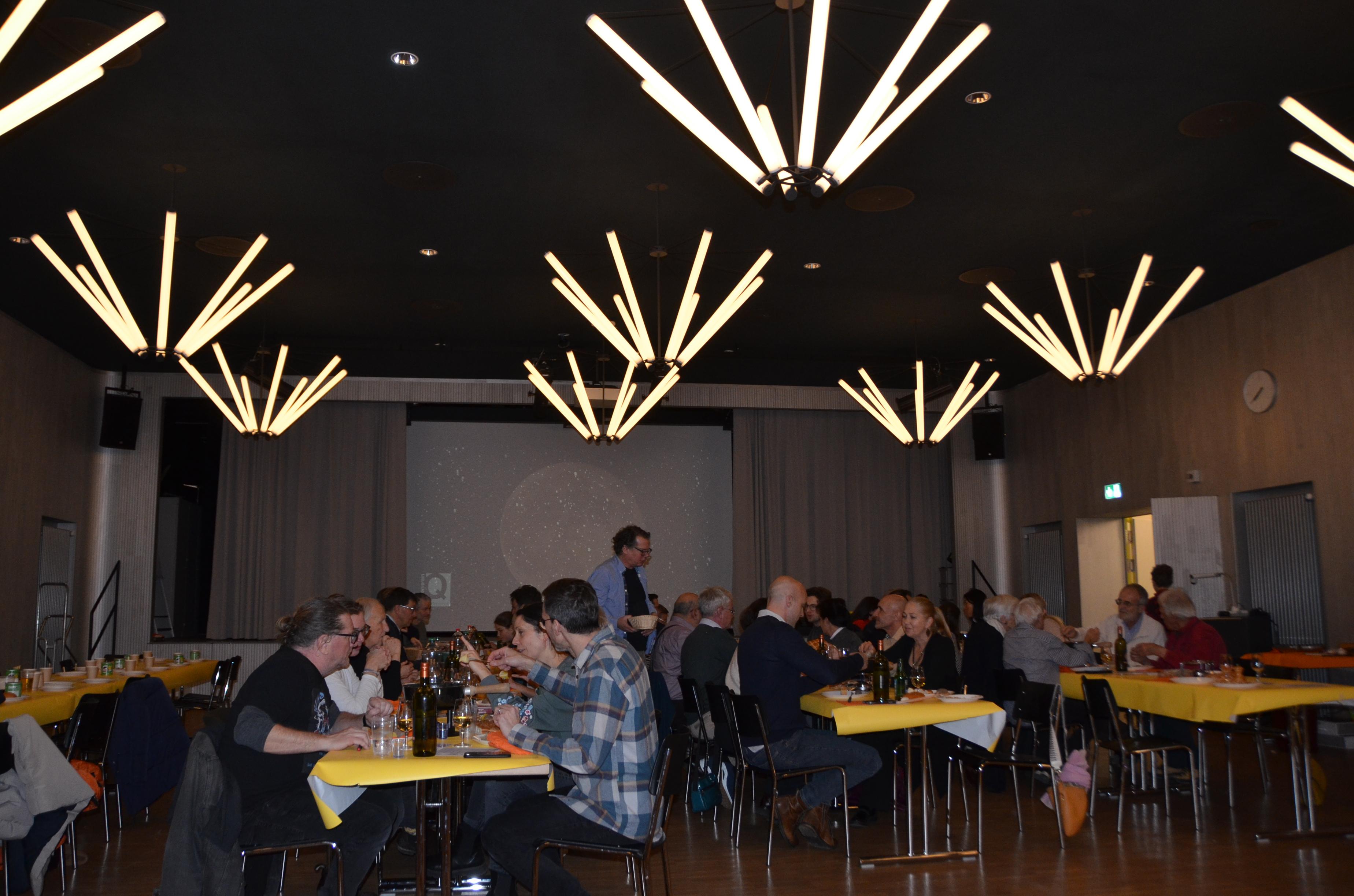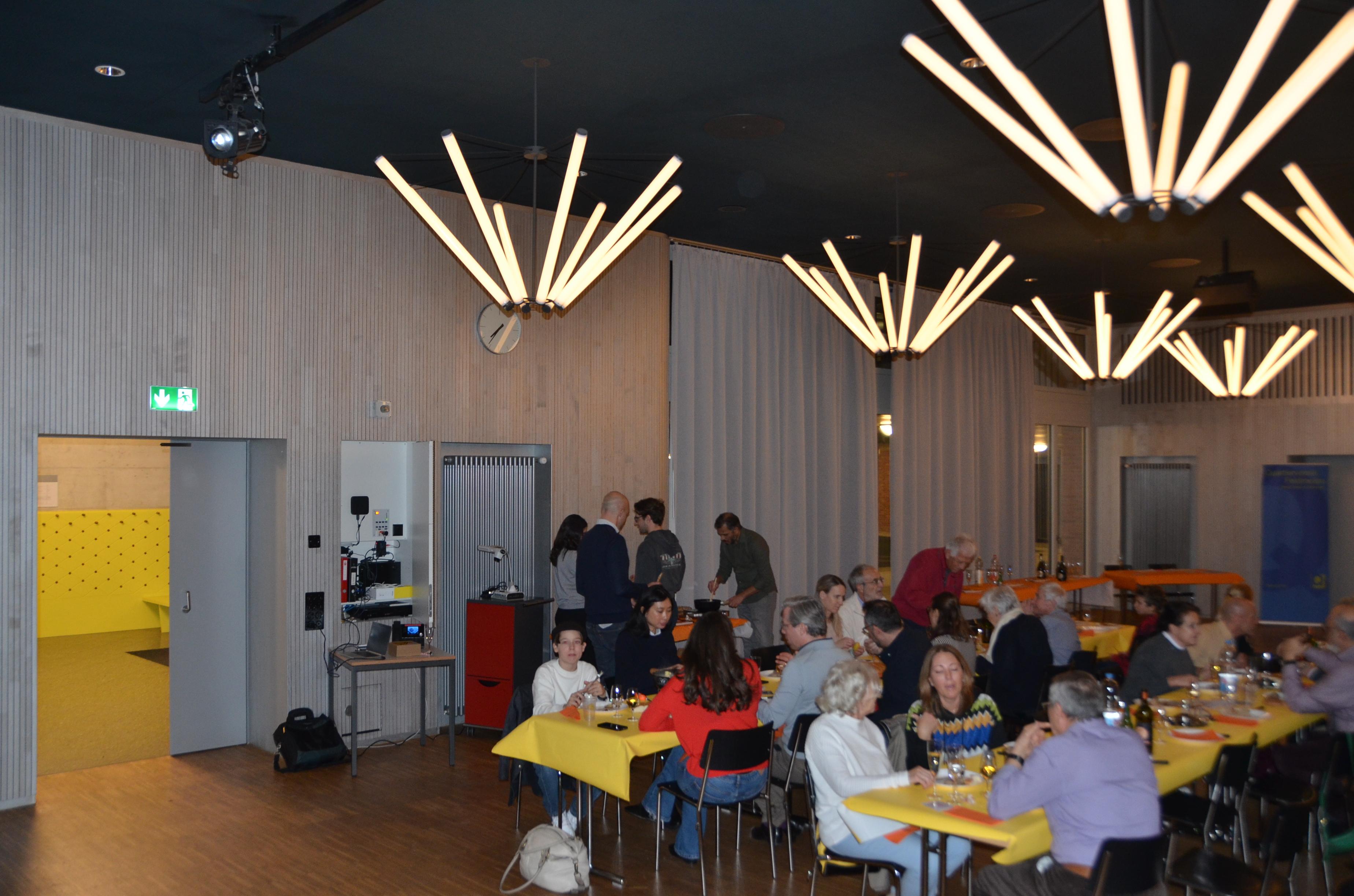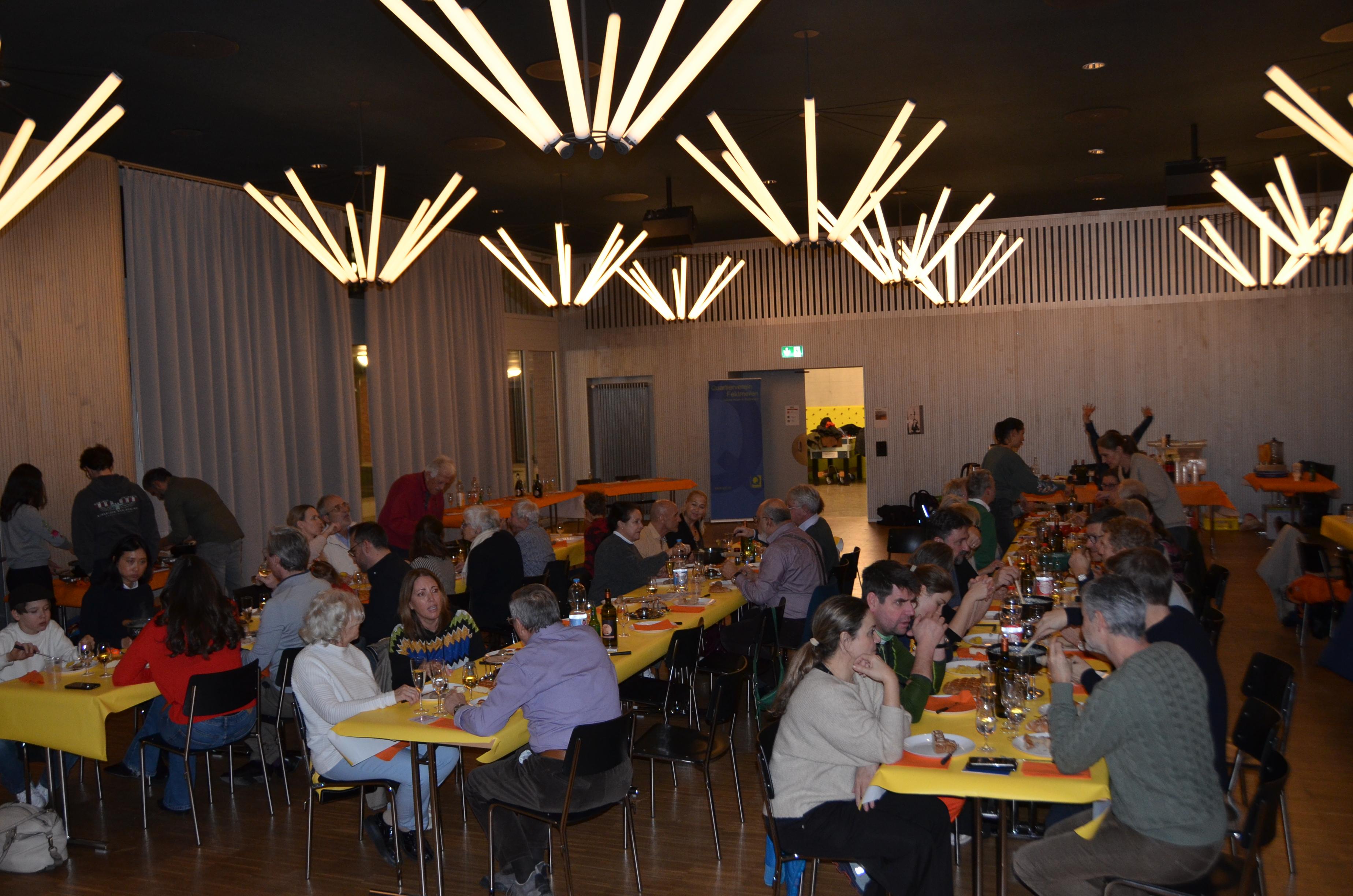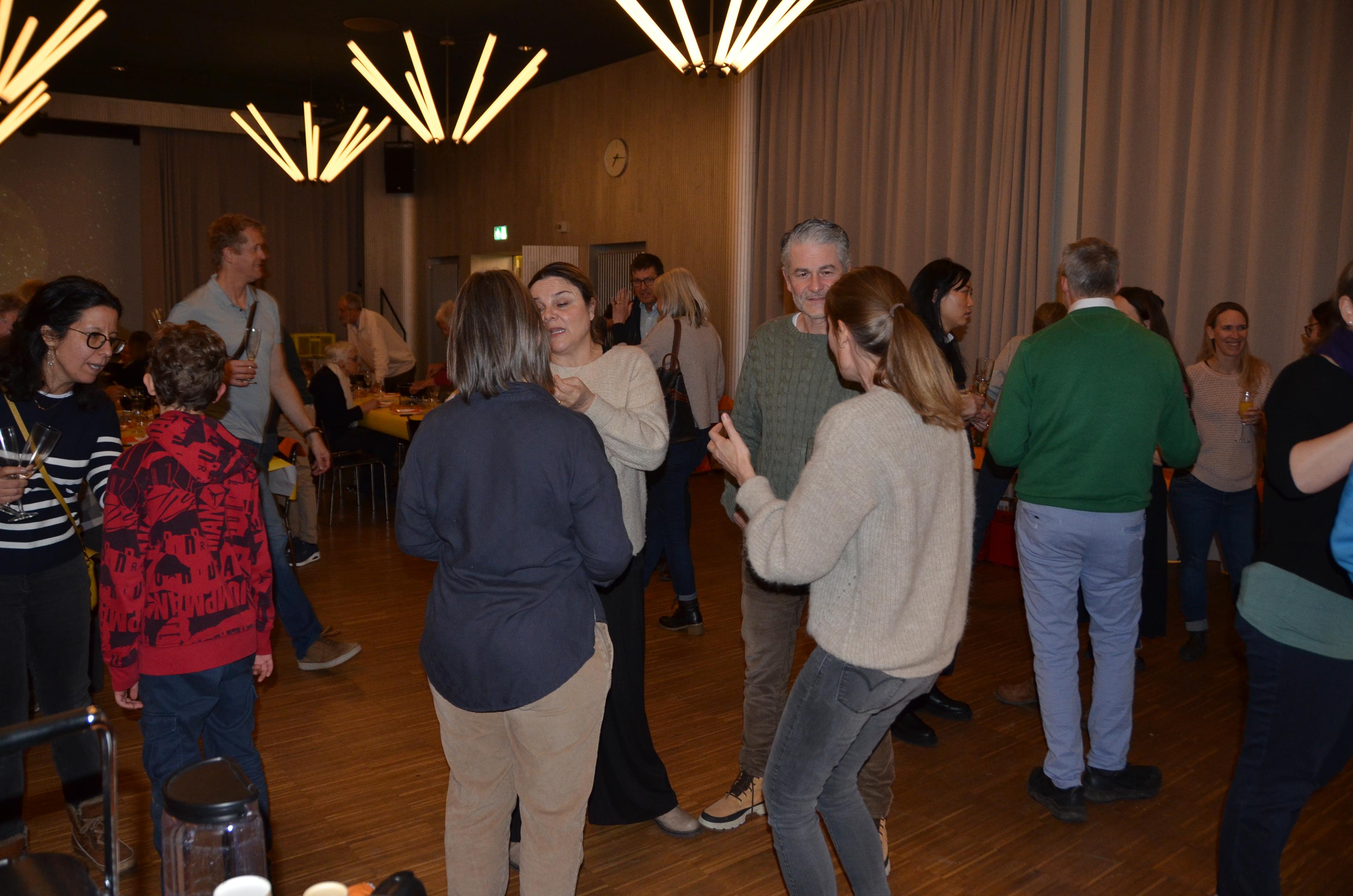 Die Aula des Schulhauses Feldmeilen wurde unter dem Schein des vollen Mondes, zu einem schönen Treffpunkt für alle aus dem Quartier, die Interesse haben, neue Leute kennenzulernen, die gerne zu Fuss in den Ausgang gehen oder die es ganz einfach schätzen, sich wieder einmal mit anderen auszutauschen. Dieses Jahr gab es jedoch aussergewöhnlich viele kurzfristige Abmeldungen, da viele krank waren. Und so fehlten dieses Jahr leider auch ein paar treue Vollmondfondue-Besucher und -Besucherinnen.